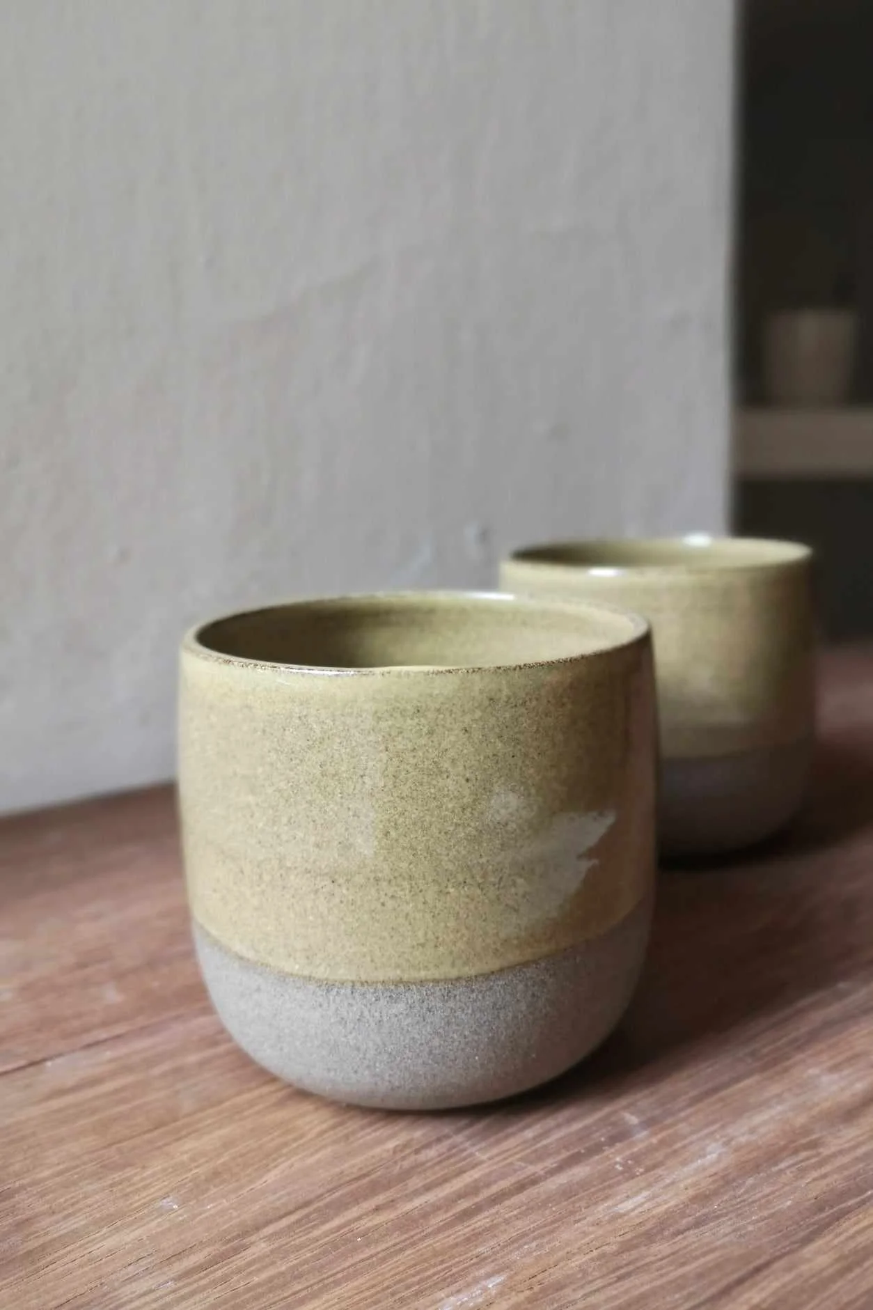 Czarka Natural toczona na kole garncarskim z brązowo-piaskowej gliny. Wewnątrz i częściowo na zewnątrz pokryta żółtym, musztardowym szkliwem.