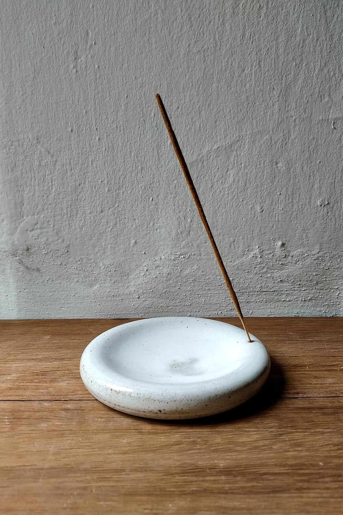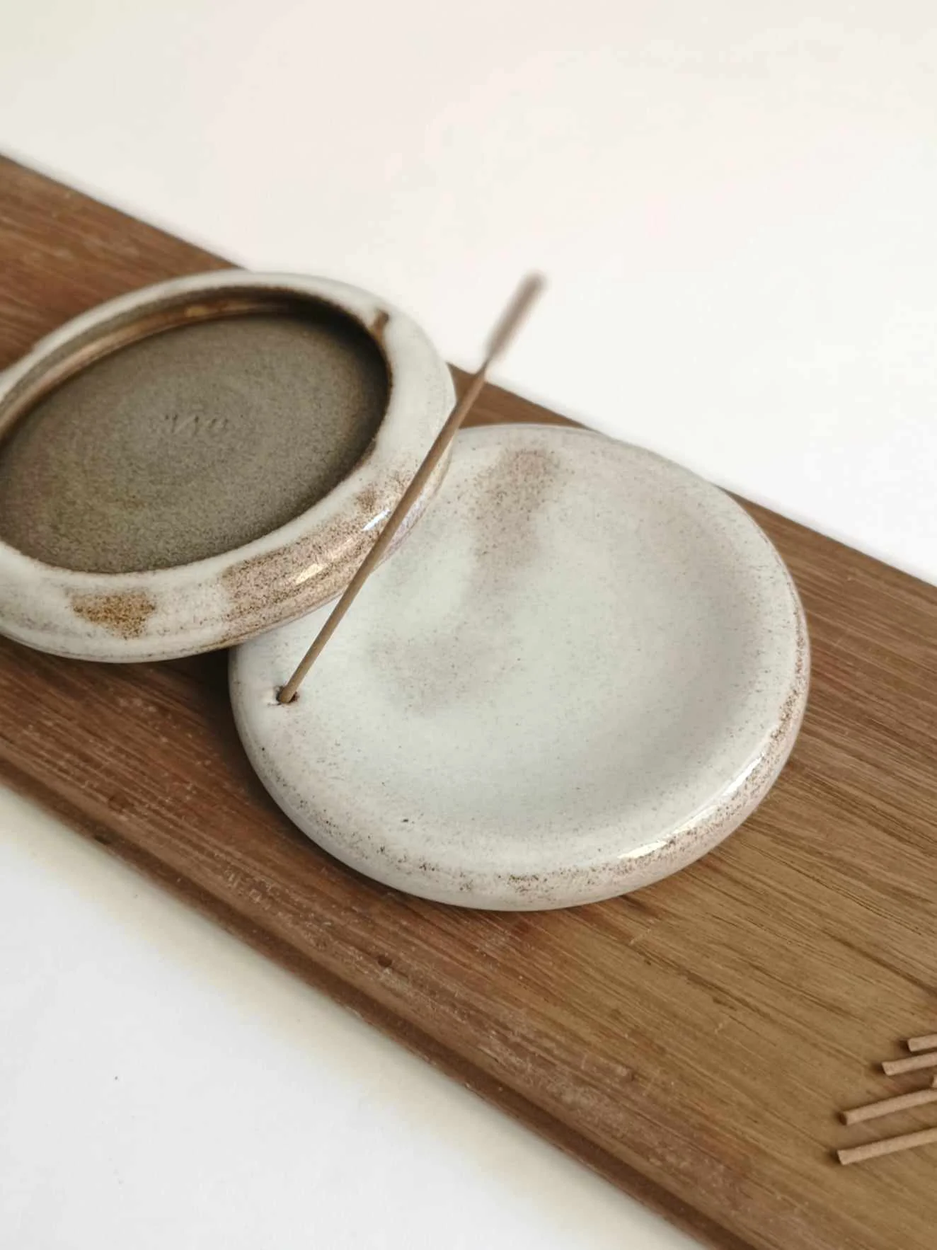 Podstawka na kadzidło Natural, toczona na kole garncarskim, pokryta białym szkliwem.