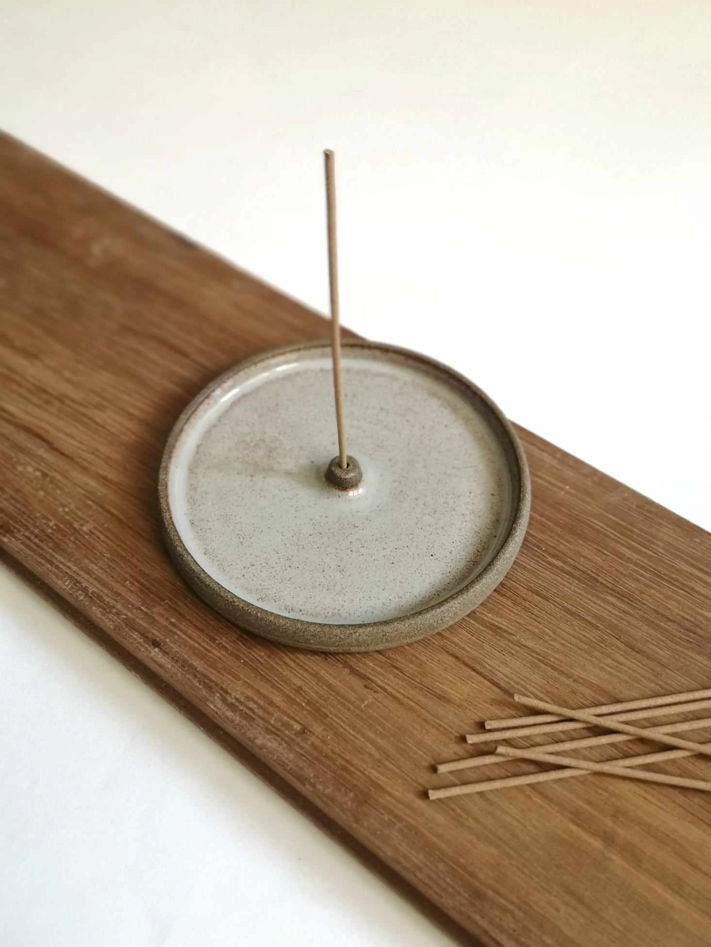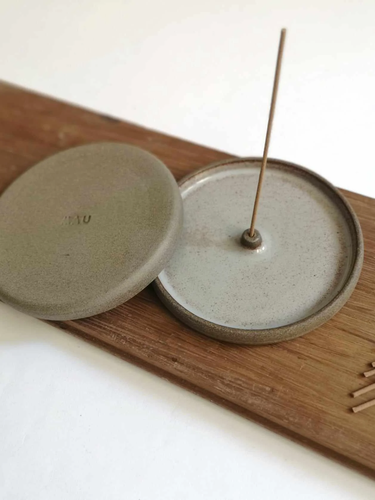 Podstawka na kadzidło Natural toczona na kole garncarskim. Wewnątrz pokryta szarym szkliwem, na zewnątrz surowa glina.