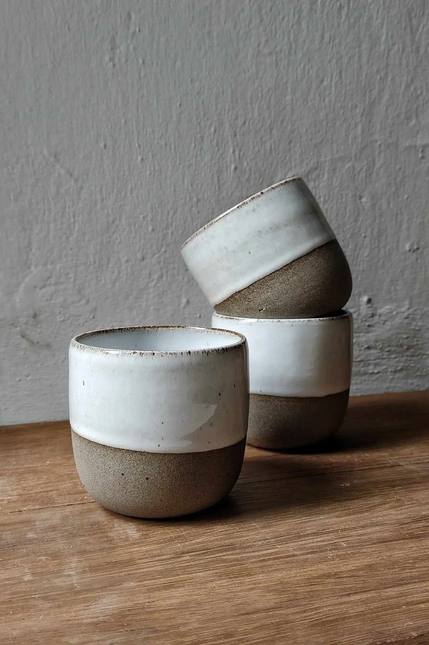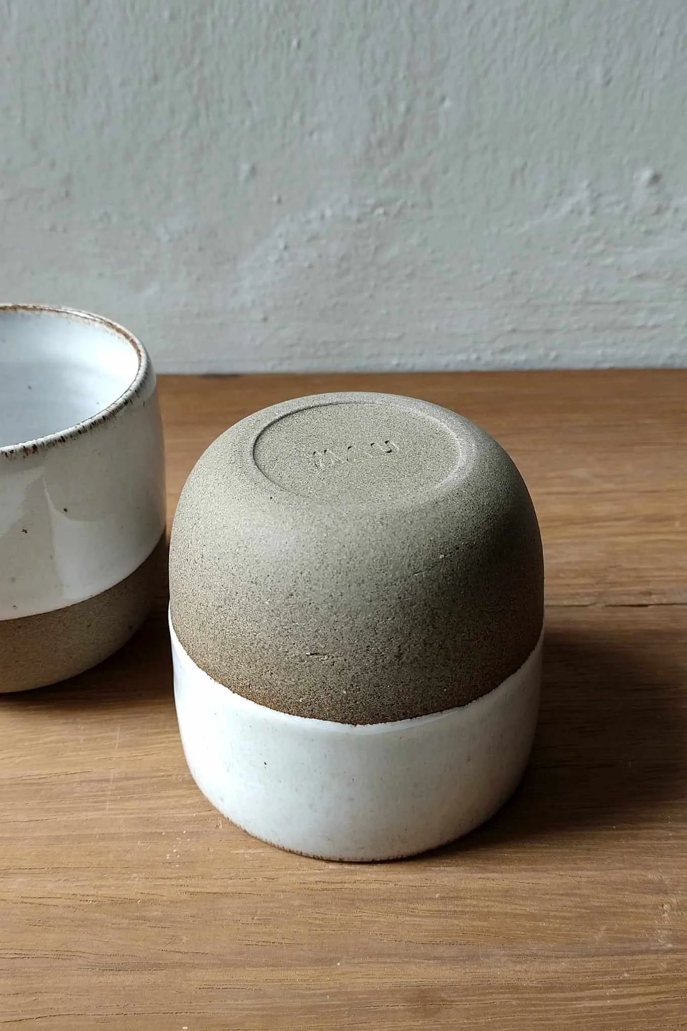 Czarka Natural toczona na kole garncarskim z brązowo-piaskowej gliny. Wewnątrz i częściowo na zewnątrz pokryta białym szkliwem.