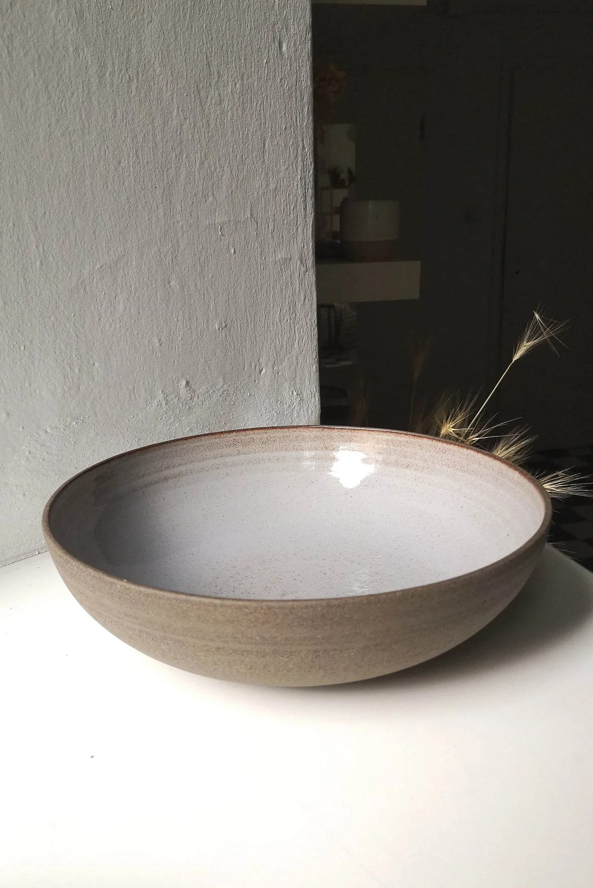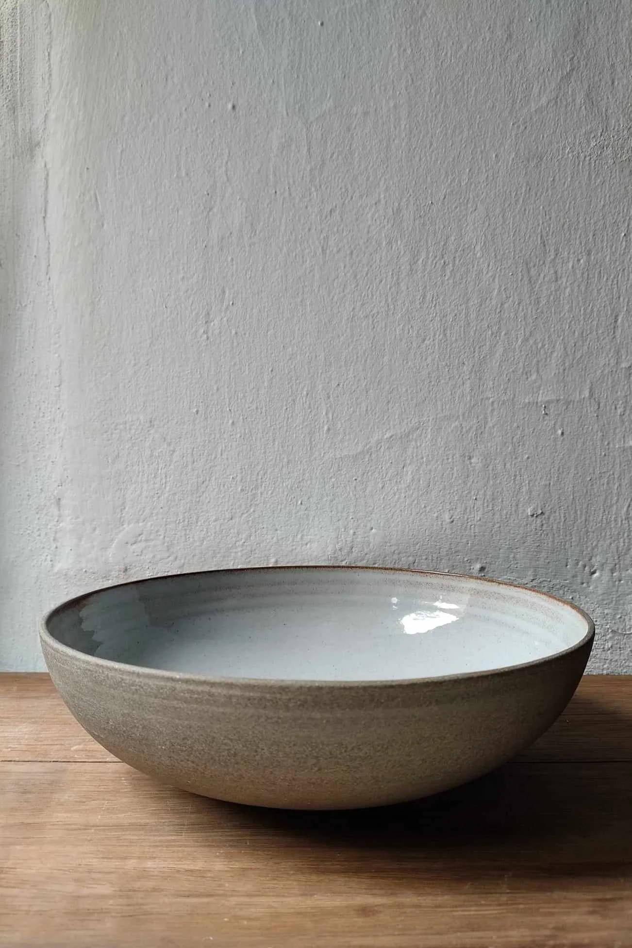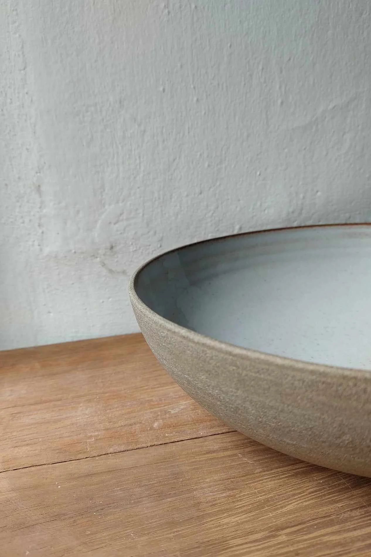 Misa Natural toczona na kole garncarskim z brązowo-piaskowej gliny. Wewnątrz pokryta szarym szkliwem, na zewnątrz surowa glina.