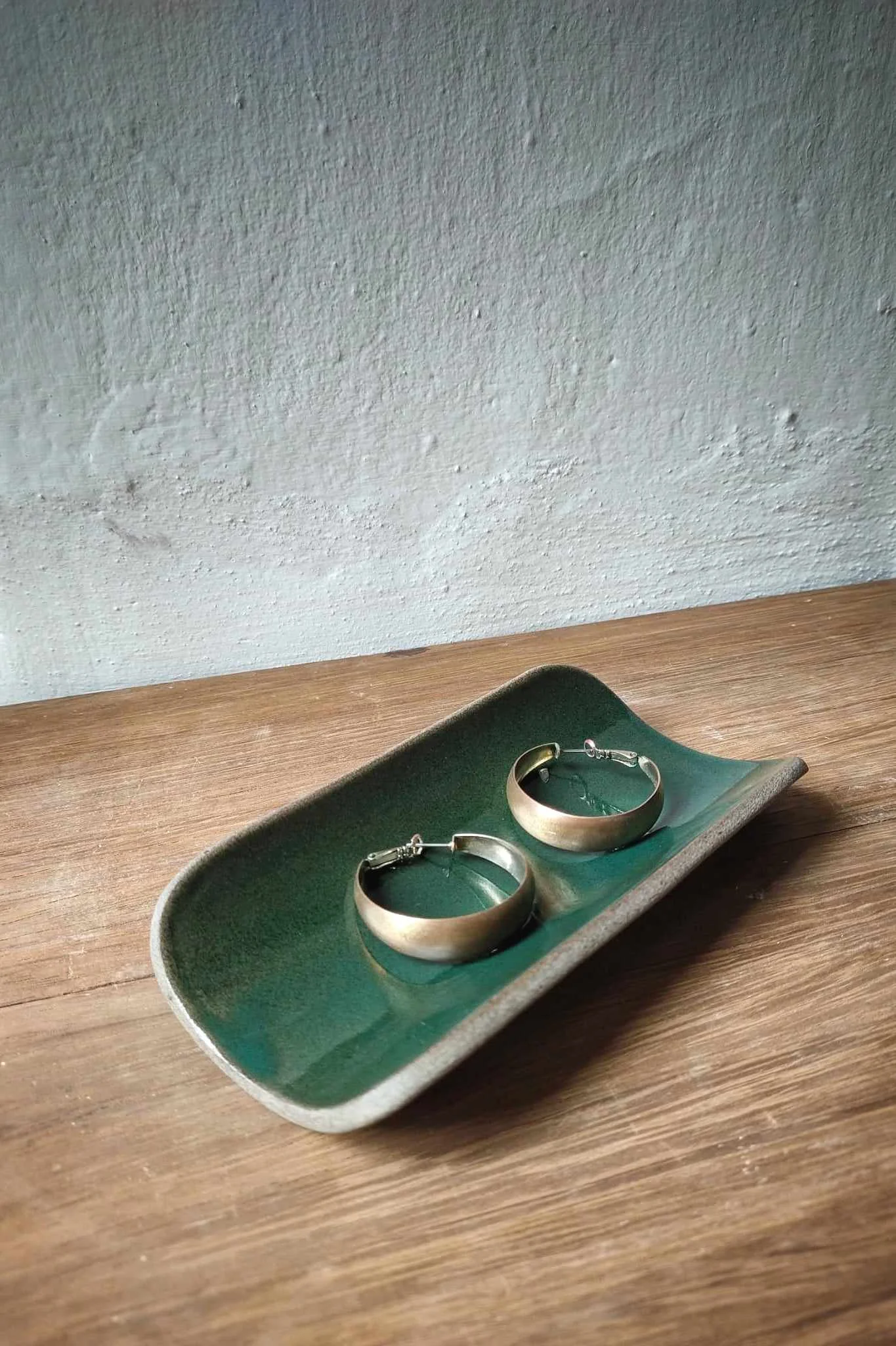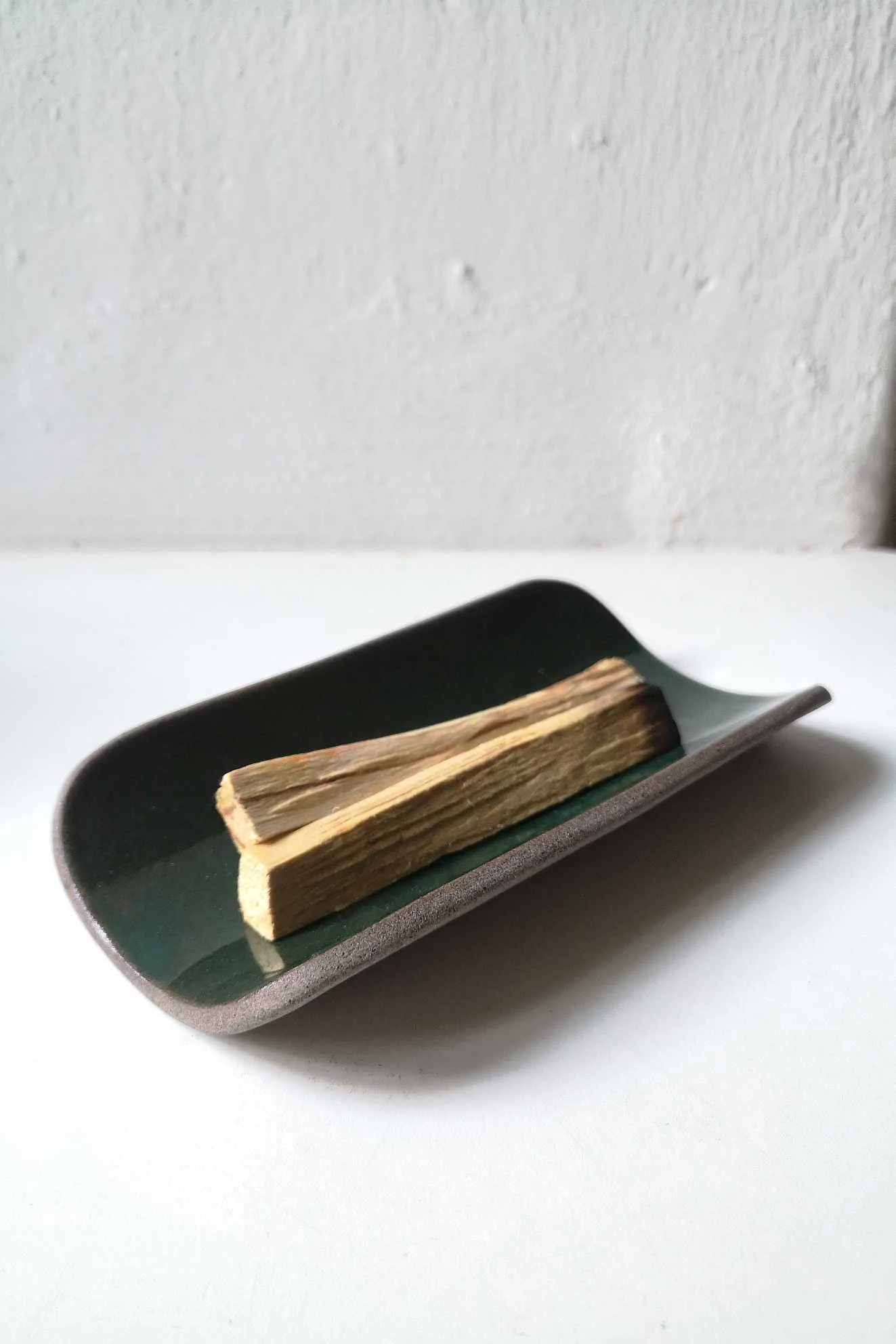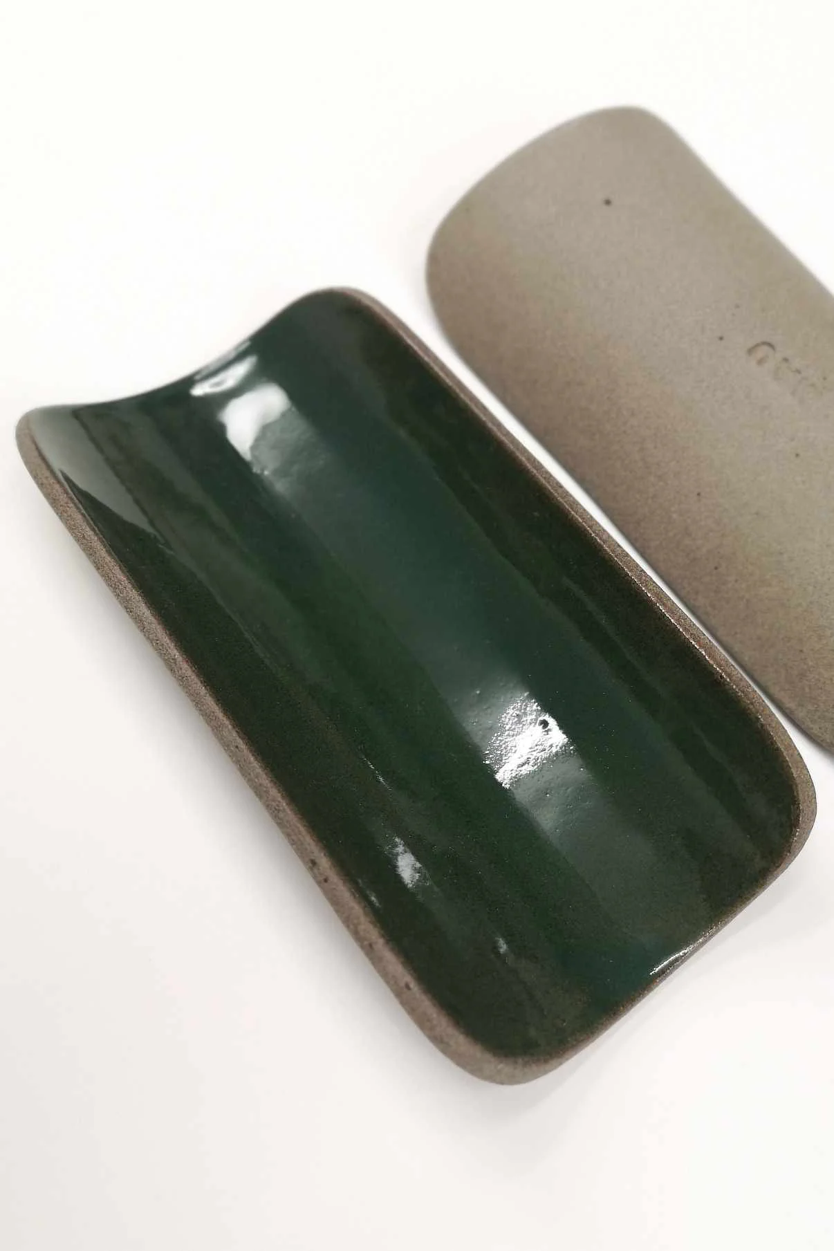 Podstawka na kadzidła lub biżuterię Natural z brązowo-piaskowej gliny. Wewnątrz pokryta zielonym szkliwem, na zewnątrz surowa glina.