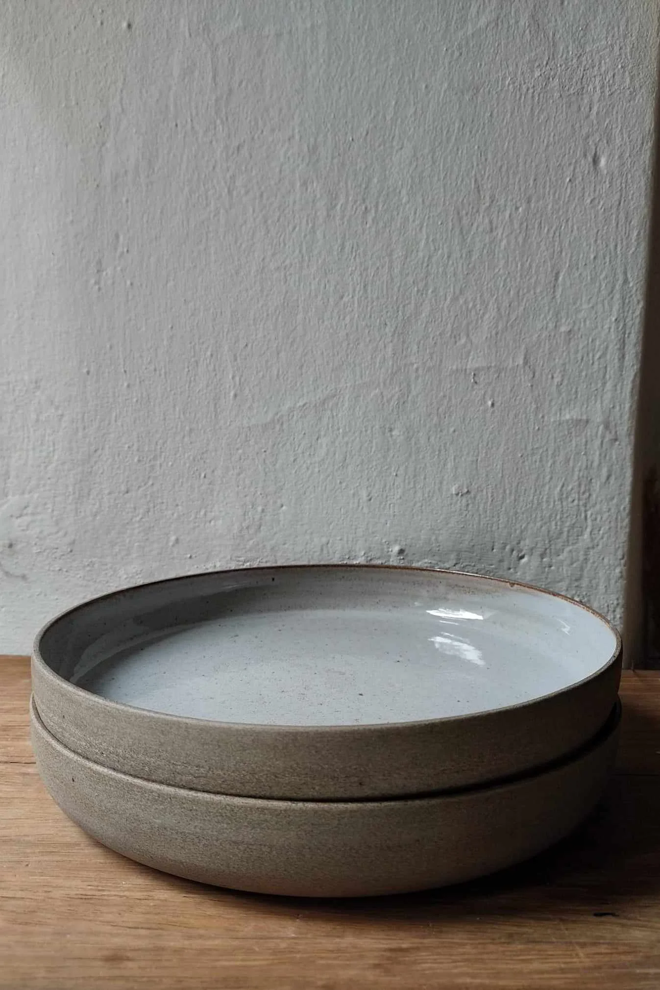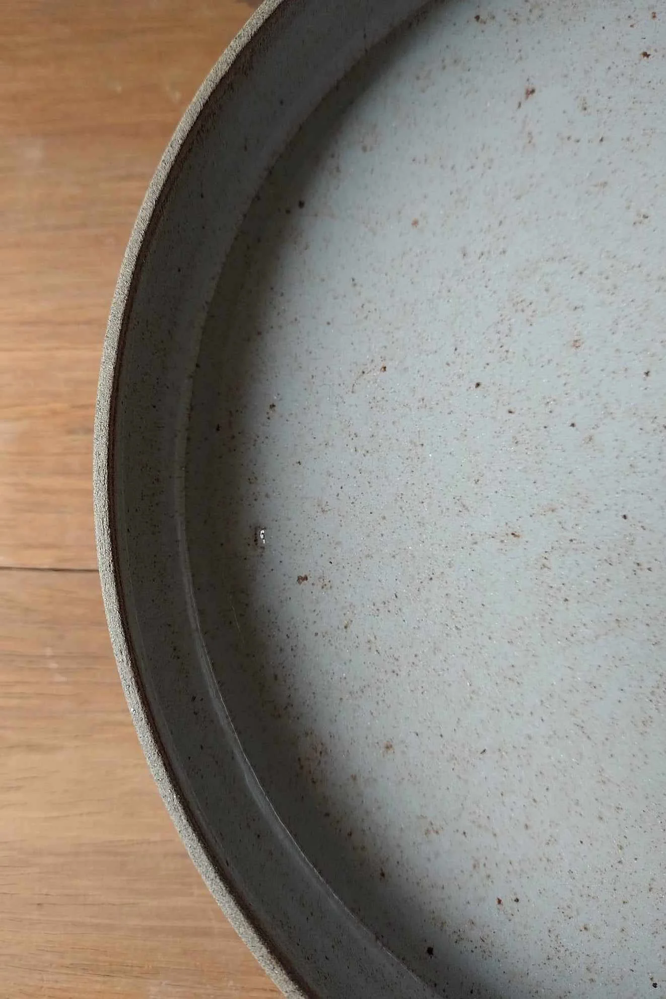 Talerz Natural z brązowo-piaskowej gliny. Wewnątrz pokryty szarym szkliwem, na zewnątrz surowa glina.